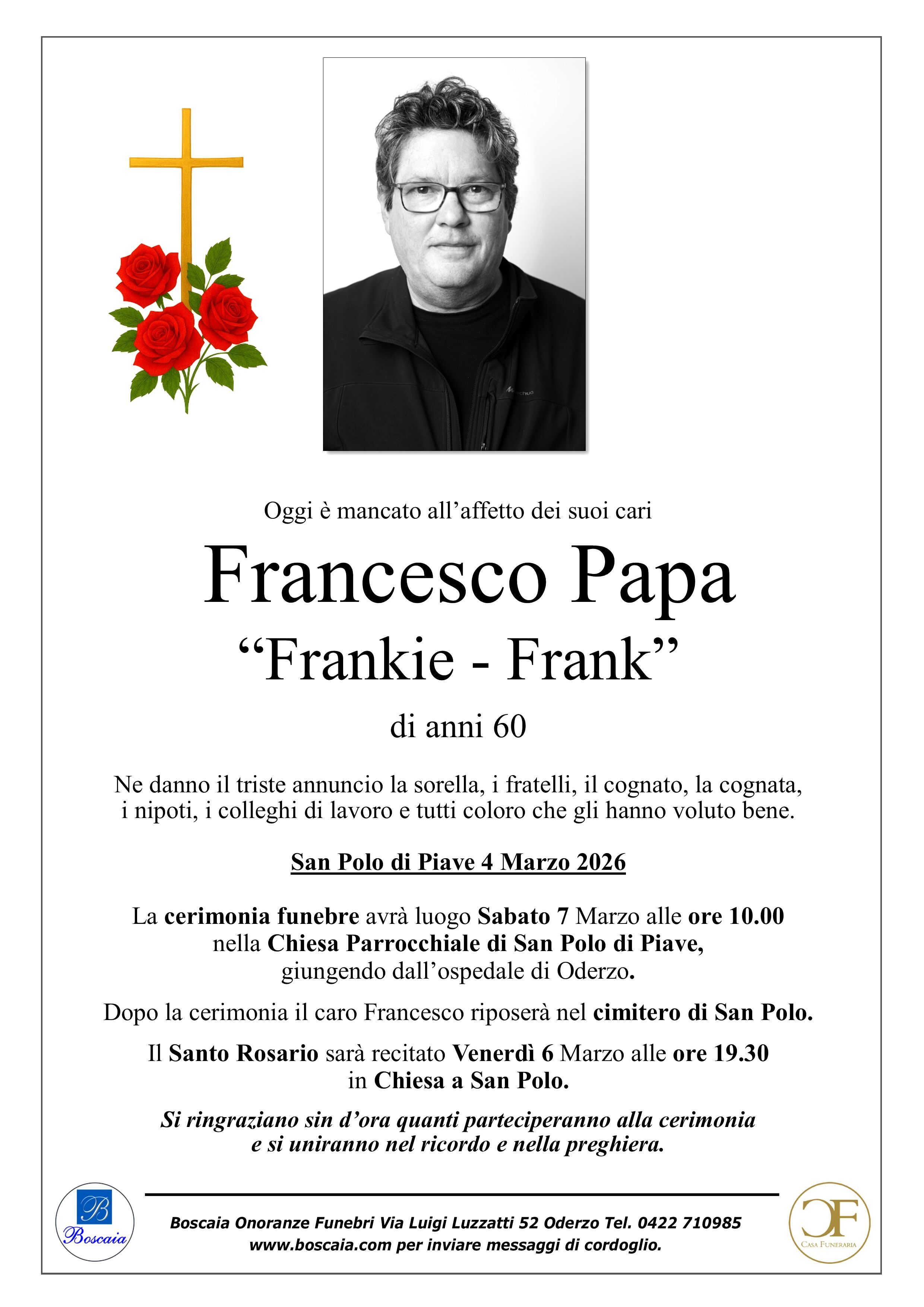 Necrologio Papa Francesco Onoranze funebri Boscaia Oderzo